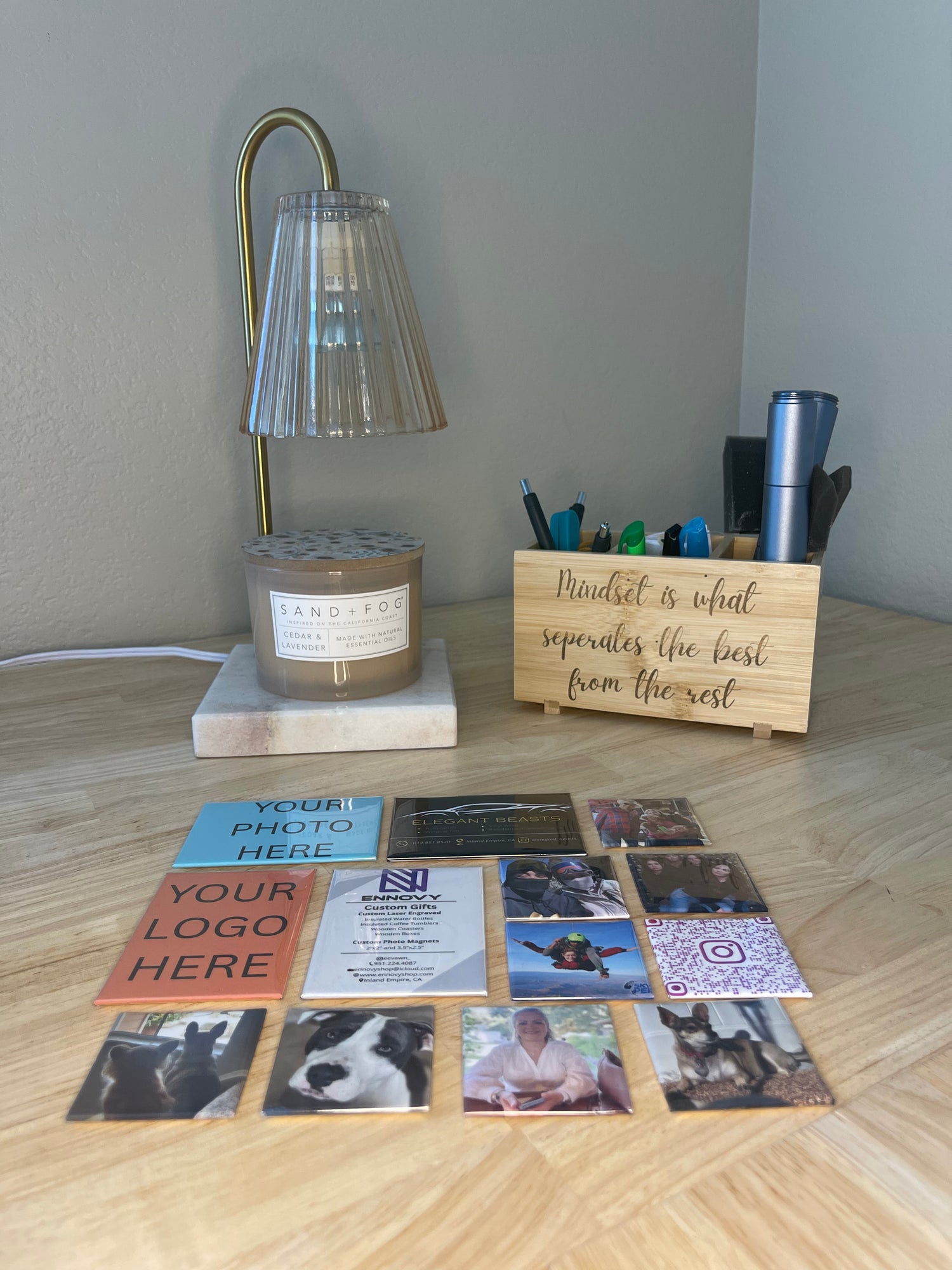 Custom photo magnets and text-personalized drink ware designed to celebrate moments that matter — for branding, gifts, keepsakes or just because.